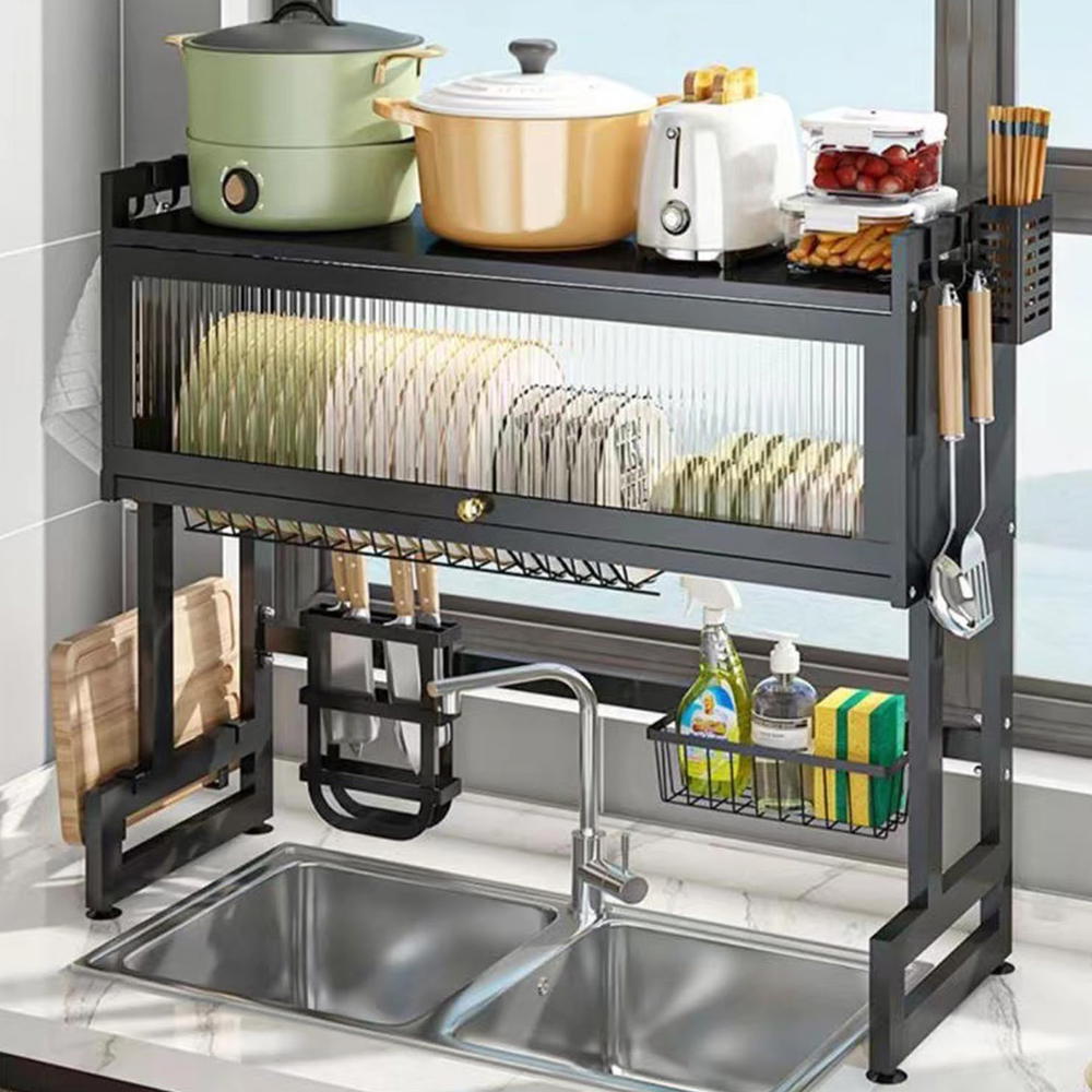 ستاند صحون فوق حوض مطبخ (سنك) مزدوج بباب زجاجي